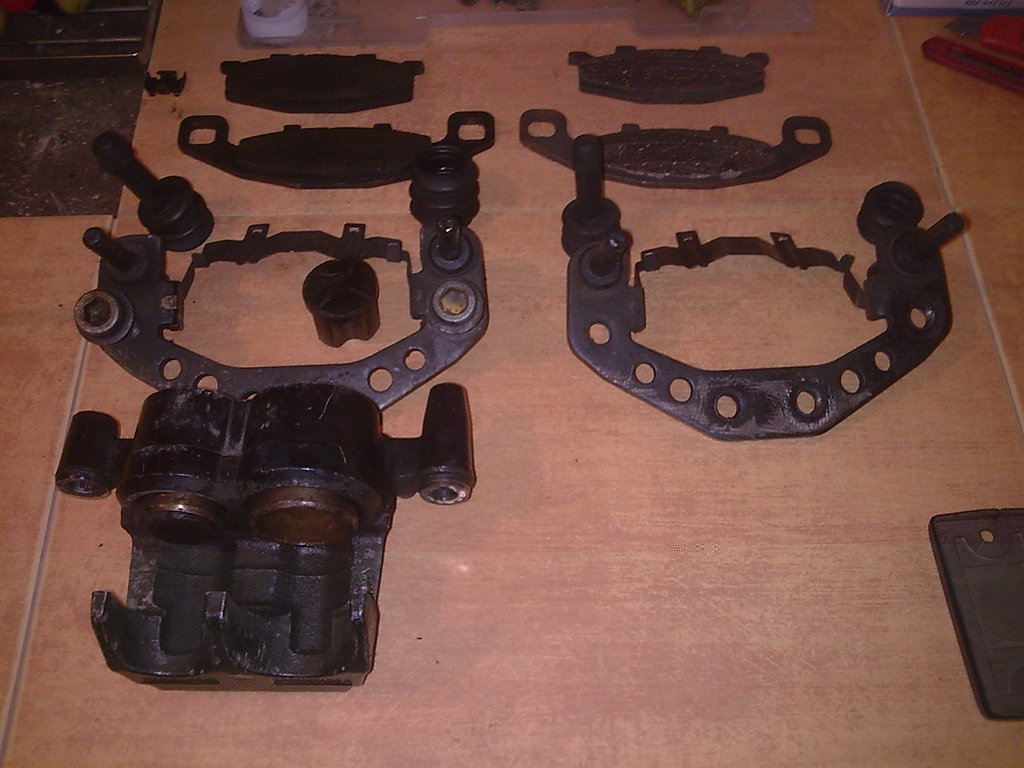 Tak wygląda rozebrany zacisk hamulcowy ER-5. Te półksiężyce to na 99% jarzmo