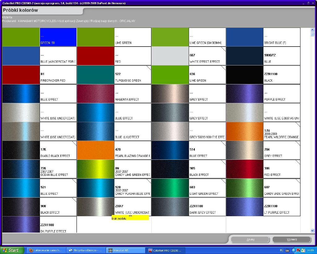 Znalazłem taką sobie palete kolorów kawasaki, Może komuś się przyda