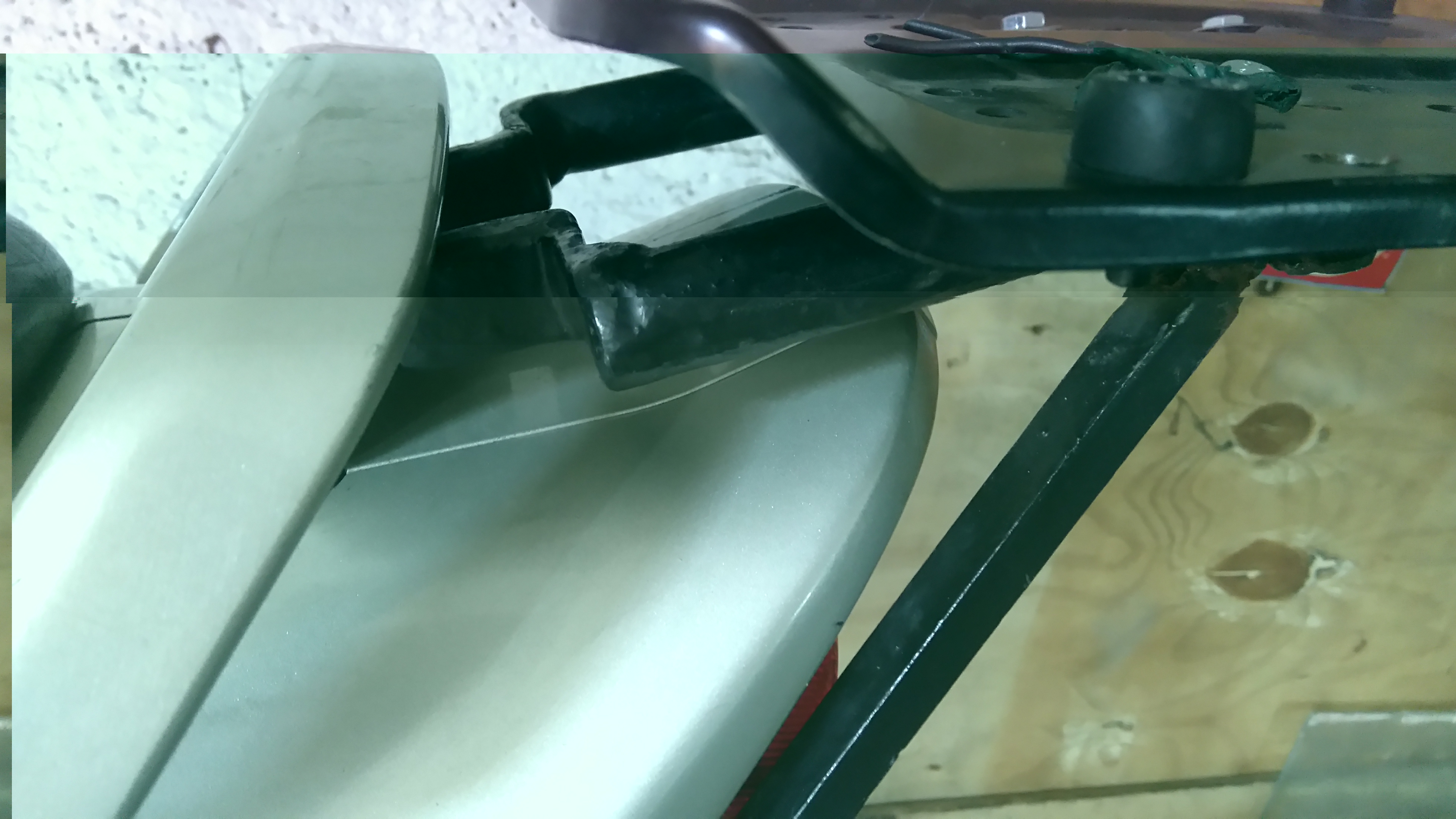 Do zamków nawet nie dochodzi jak widzisz. A jak się trzymają te rury kwadratowe pod plastikami ? Najprościej jak można było zrobić. Dwie śrubki na klucz 8 wychodzą obok siebie i za tym bolcem co ramy wystaje do dołu kawałek blaszki, nakrętki i jest cacy