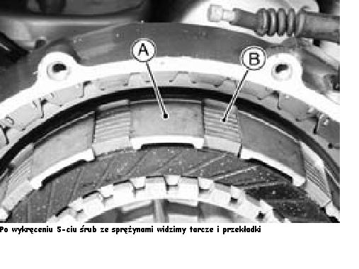 4 Następnie wyciągamy pojedynczo tarcze i przekładki zapamiętując w jakiej były kolejności ( trzeba złożyć identycznie tak jak było oryginalnie tzn tarcza przekładka tarcza przekładka). I skręcamy z powrotem z nowymi tarczami , śruby z sprężynami ,zakładamy nową uszczelkę, dekiel przykręcamy, zakładamy linkę na zawias , wlewamy olej i koniec.