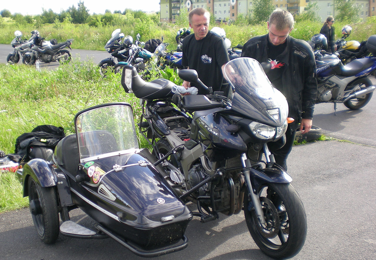 Ponownie wpadliśmy na zlot TDM'a lecz tym razem na tor w Lublinie. Nie wjeżdżaliśmy, ale mi się udało załapać na przejażdżkę w wózku bocznym. Cała maszyna wygląda o tak: Na zlocie porównywałem dźwięk TDM'a z dwoma tłumikami Montii i odpada pod względem głośności z moim jednym.