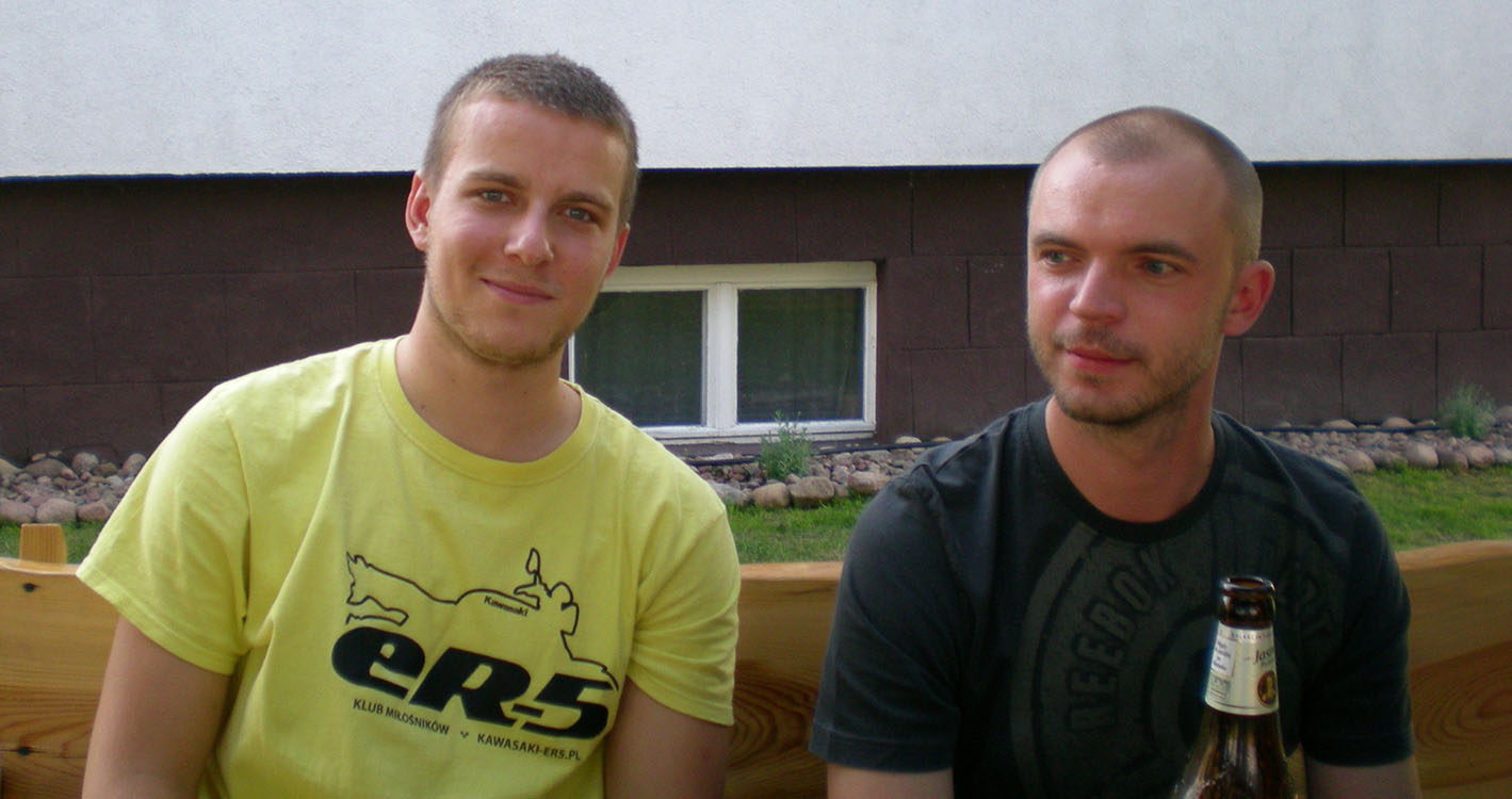 Wyruszyłem w trasę około godziny 15. z Gdańska. Kierunek - Działdowo. Odwiedzić nasze forumowe dziewczyny: Anię i Olę. Zjeżdżając z 7 w Rychnowie miałem dać znać Oli, żeby wyjechała w moją stronę. Nie zrobiłem tego, planowałem zrobić niespodziankę i przyjechać bezpośrednio pod ich dom. Podjechałem pod dom. Dziewczyny z początku stwierdziły, że to jakiś chopper przyjechał, ale długo nie czekając poszły sprawdzić i przekonały się, że to poczciwa ER'ka. Przywitały mnie entuzjastycznie. Tego wieczoru był grill. Dorobiłem się na nim oto takiej fotki: Było dużo fajnych ludzi i dużo piwa, więc wieczór spędzony bardzo przyjemnie.