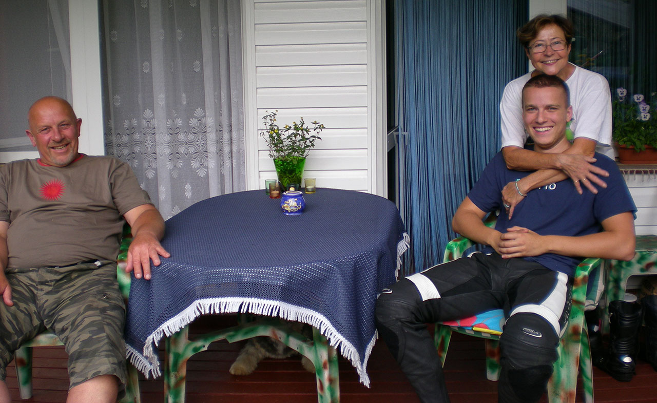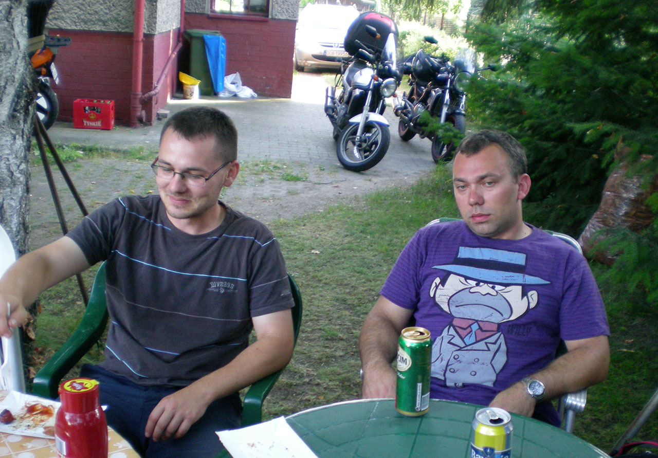 Zjeżdżając z 7 w Rychnowie miałem dać znać Oli, żeby wyjechała w moją stronę. Nie zrobiłem tego, planowałem zrobić niespodziankę i przyjechać bezpośrednio pod ich dom. Podjechałem pod dom. Dziewczyny z początku stwierdziły, że to jakiś chopper przyjechał, ale długo nie czekając poszły sprawdzić i przekonały się, że to poczciwa ER'ka. Przywitały mnie entuzjastycznie. Tego wieczoru był grill. Dorobiłem się na nim oto takiej fotki: