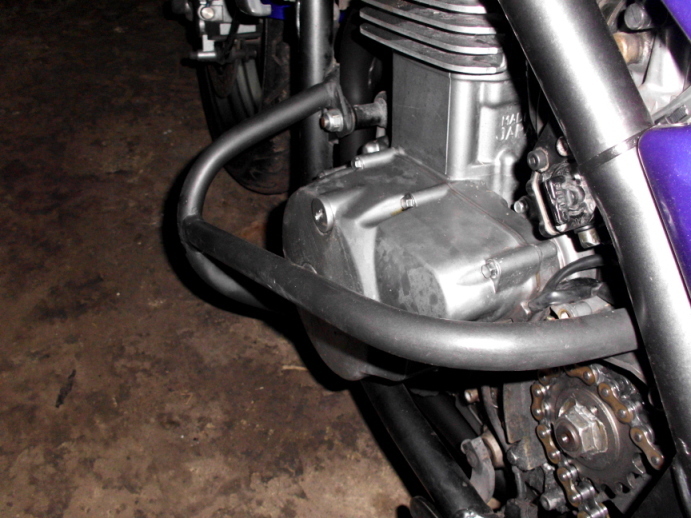 Płaskownik trzeba lekko podciąć, żeby mieścił się pomiędzy ramę a obudowę zębatki. Mocowanie górne, tył, prawe (od strony sprzęgła): Mocowanie dolne: Kwestia wykończenia zależy od fantazji wykonującego.